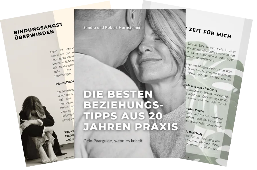 Erfolgreiche Beziehungen gelingen auch ohne endlose Paartherapie! Das beweisen Sandra und Robert Hornsteiner seit mehr als 20 Jahren – und haben schon mehr als 200 Paaren zurück in eine glückliche und erfüllende Beziehung geholfen.