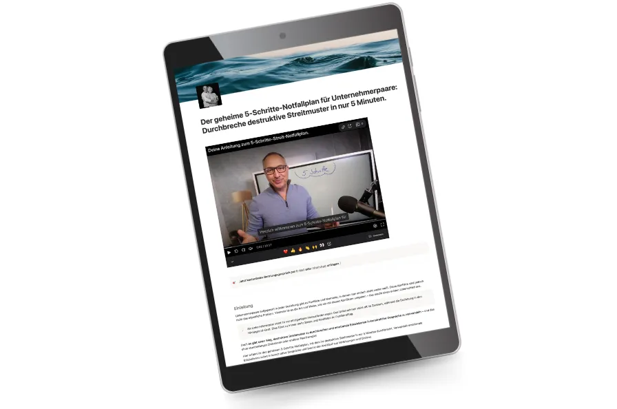Kostenloser 5-Schritte-Streit-Notfallplan für Unternehmerpaare, nur für kurze Zeit verfügbar. Bereits über 927 Downloads.